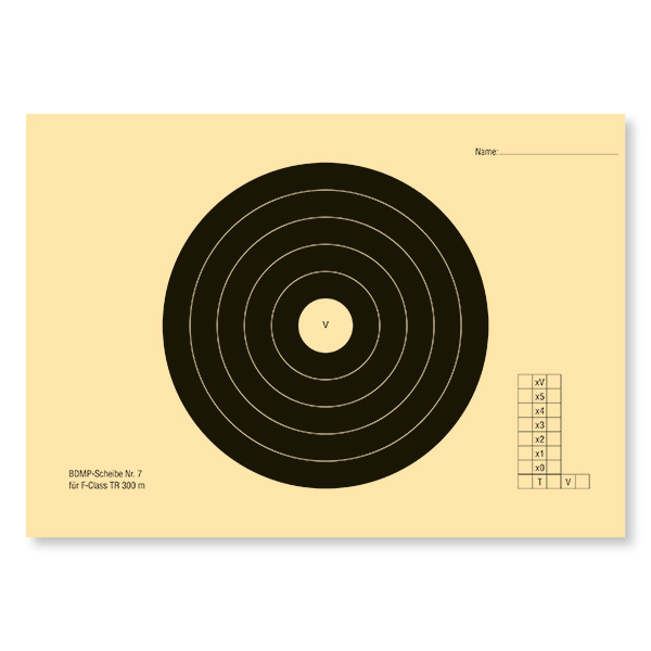 BDMP Scheibe Nr. 7, 250 Stück, Ringscheibe von 5 1 für F Class TR 300 m, 42x29,7cm, Schießscheibenkarton